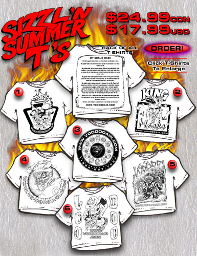 ![]() [ T-Shirt Front ] [ Flamin' Goalie ] [ King of Masks ] [ Circle of Voo Doo ] [ Circle Skull ] [ Bone Goalie ] [ Bones & Chains ] VOO DOO AIRBRUSHING E-MAIL: paint@voodooair.com Phone: 905-686-7554 Fax: 905-686-1953 717 Finley Ave. #9 &10, Ajax ON., Canada, L1S 3T1 |